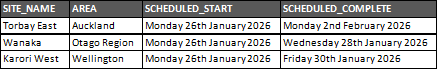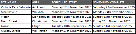 Planned One NZ network maintenance is scheduled for the following areas impacting RBI Wireless and Urban Wireless broadband services. The dates provided are subject to change, we will update this page in the event of any changes to the scheduled dates should we be notified. Please check this page regularly for any changes.